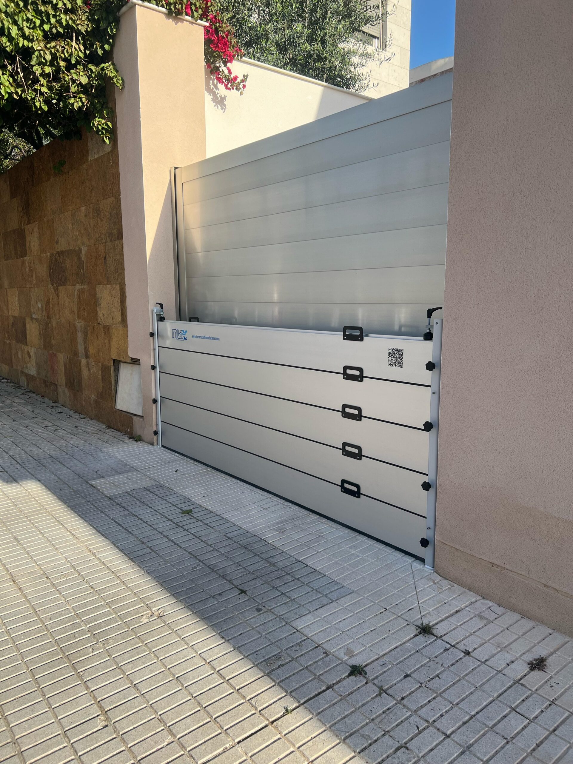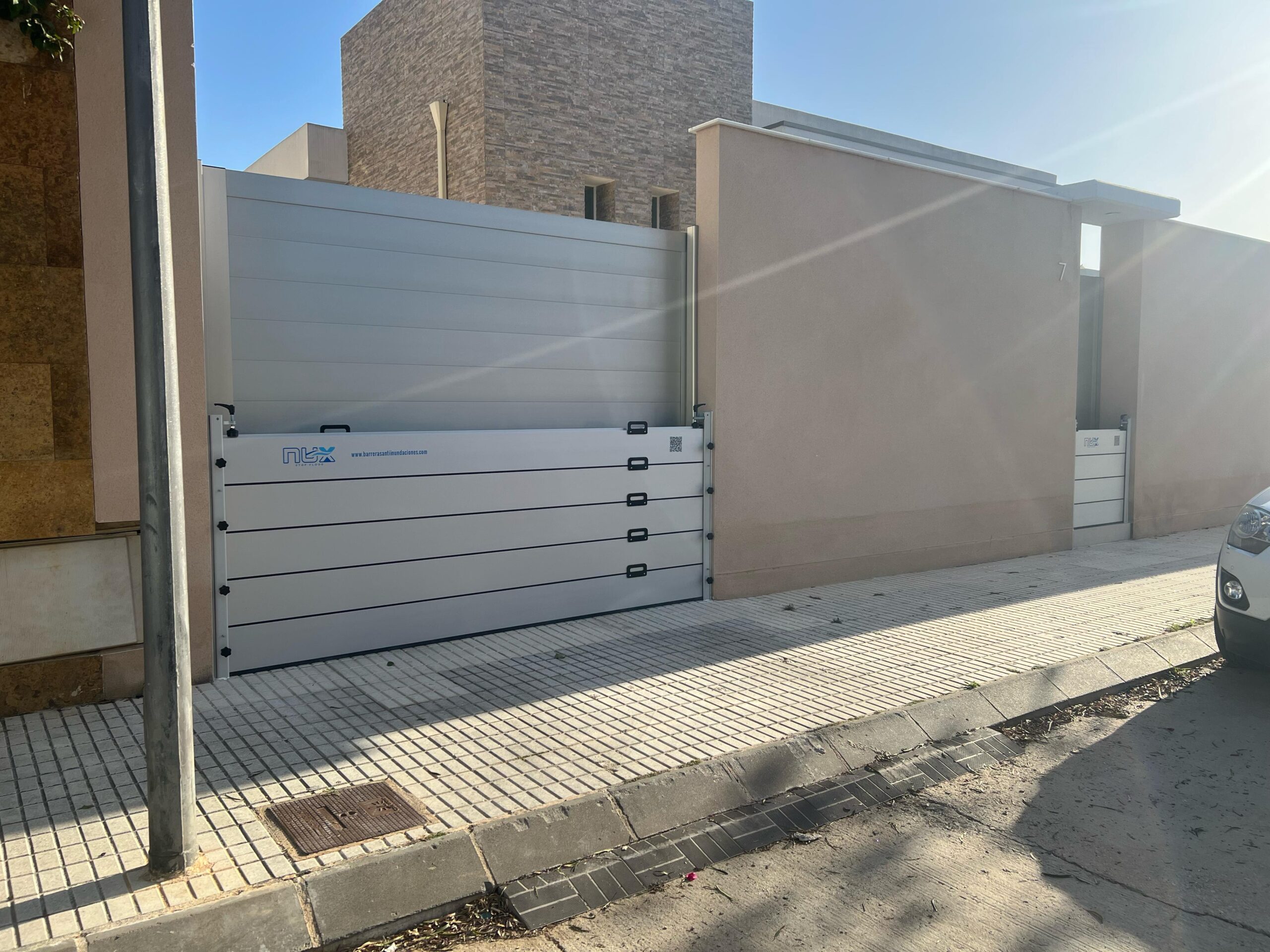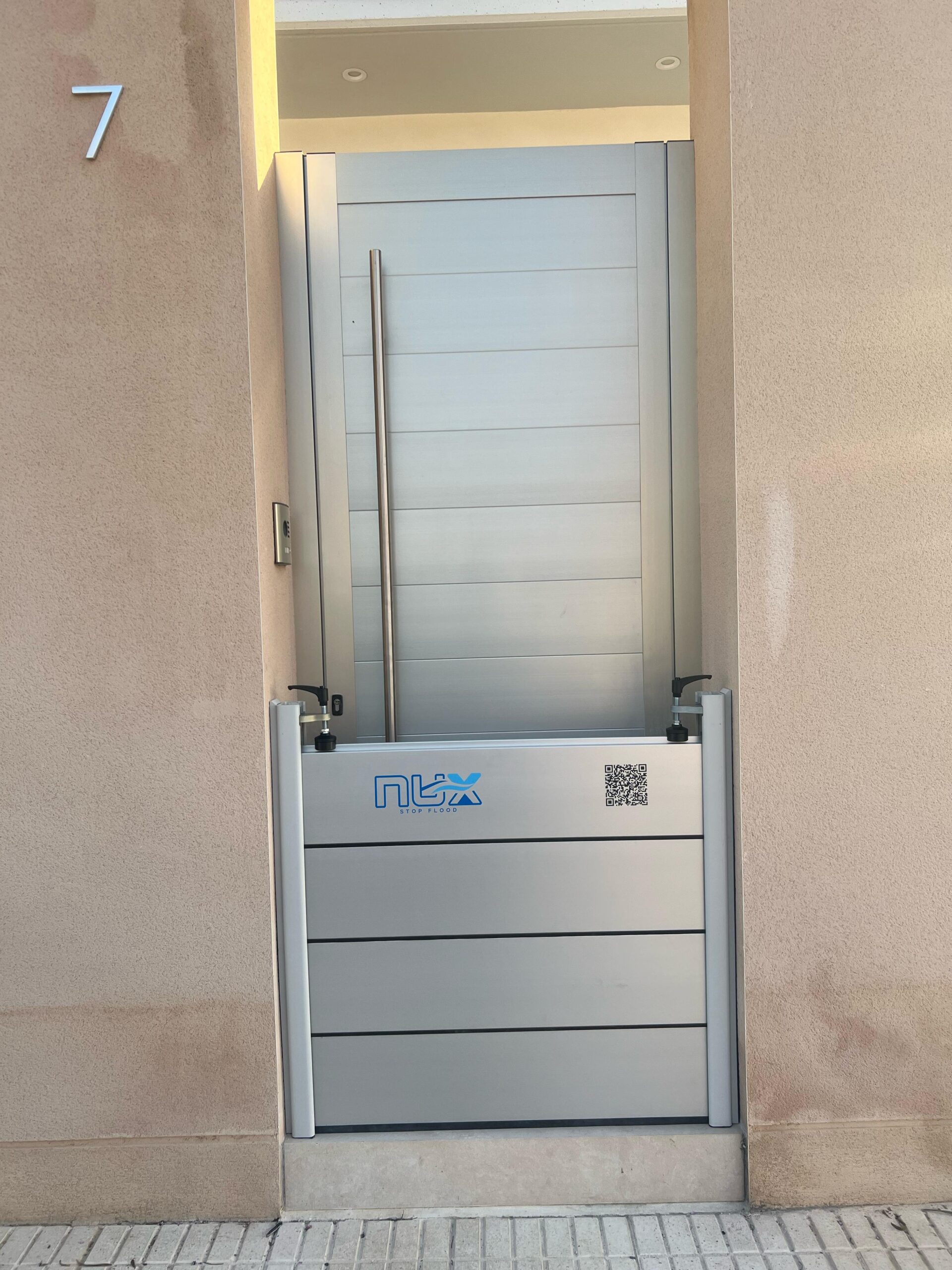 Barrera anti inundaciones de 112 cm de altura para proteger la entrada del garaje y una barrera de 91 cm de altura para proteger la entrada a la vivienda .