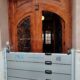 Barrera anti inundaciones partida en dos secciones por un pilar intermedio desmontable